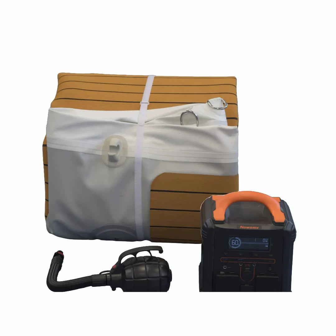 Lieferumfang: yourFLOAT PRIME 4.0 Plattform, leistungsstarke Hochdruckpumpe, optional robuste Tragetasche und Reparatur-Kit.